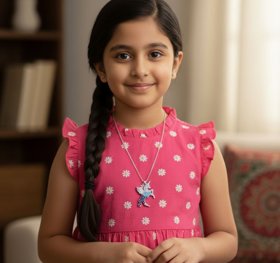 Unleash a little magic with the Unicorn Glow Necklace, a dazzling piece that blends fantasy and sparkle. Featuring a delicate unicorn adorned with lab-grown diamonds and a charming star accent, it’s a symbol of dreams and wonder. Lightweight and hypoallergenic, this enchanting necklace is perfect for adding a touch of whimsical elegance to everyday style.