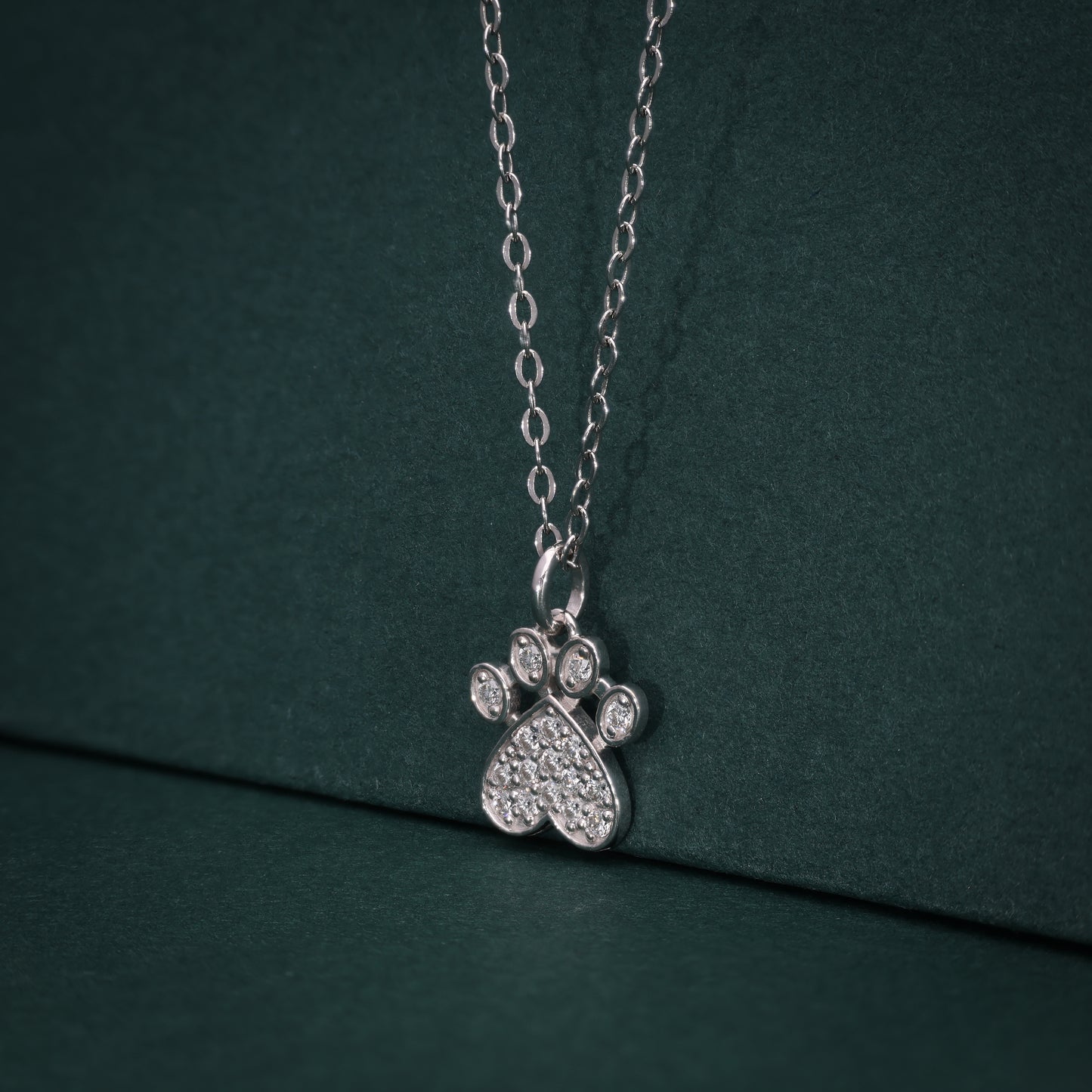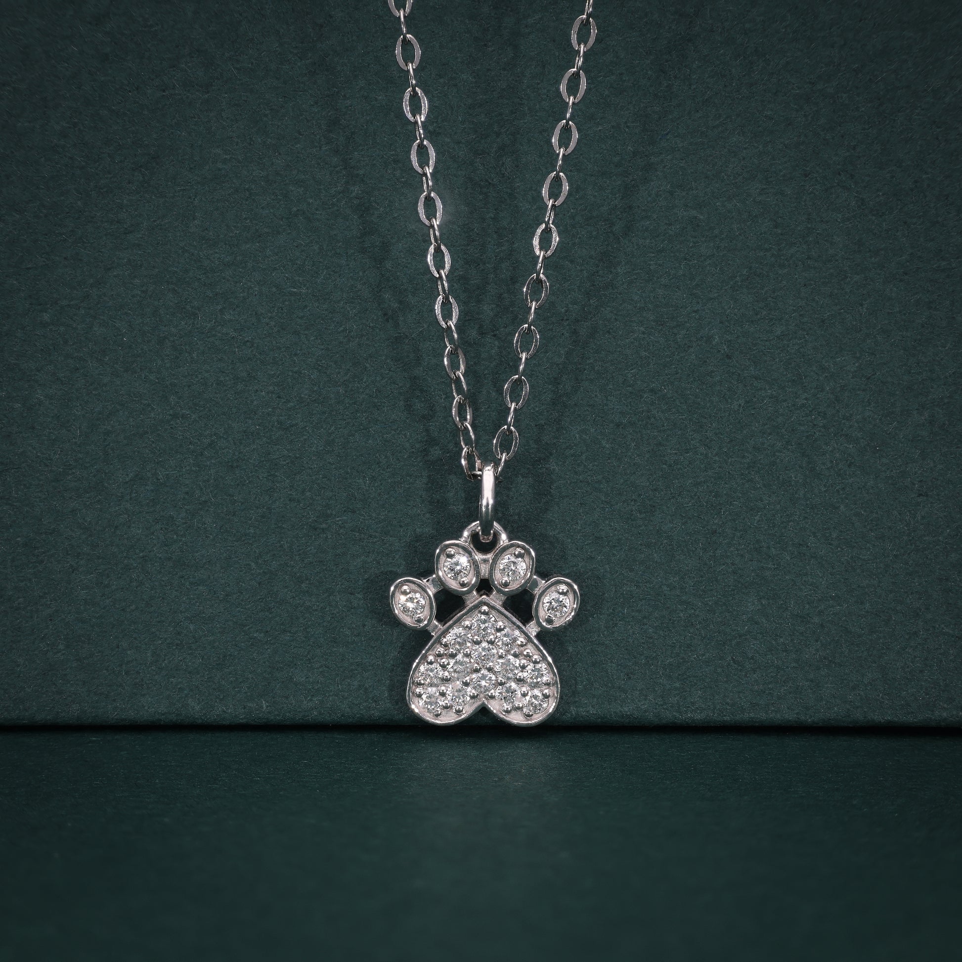 Capture the essence of unconditional love and loyalty with the Sparkle Paw Pendant, a dazzling tribute to your beloved furry companion. Crafted in luminous white gold, this pendant features a beautifully detailed paw design adorned with brilliant diamonds that shimmer with every movement.