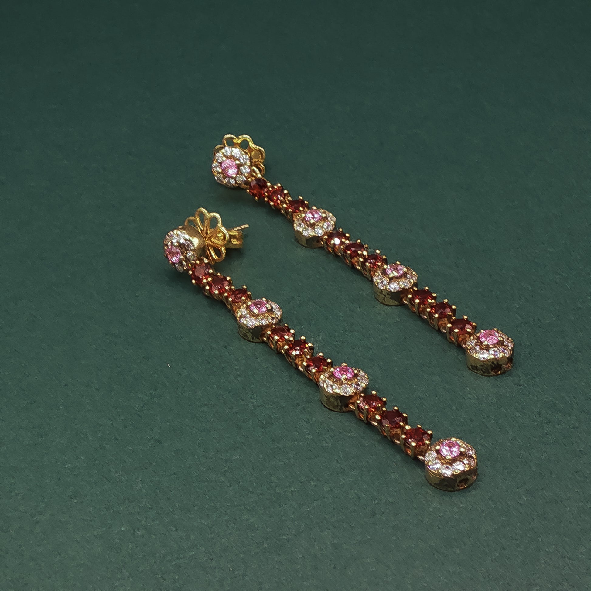 Elevate your ensemble with these captivating gold dangle earrings. Featuring round cabochon cut garnets, these earrings showcase a deep red hue, creating a harmonious balance of classic charm and modern elegance. The earrings' design ensures a graceful movement, perfect for adding a touch of sophistication to any occasion.