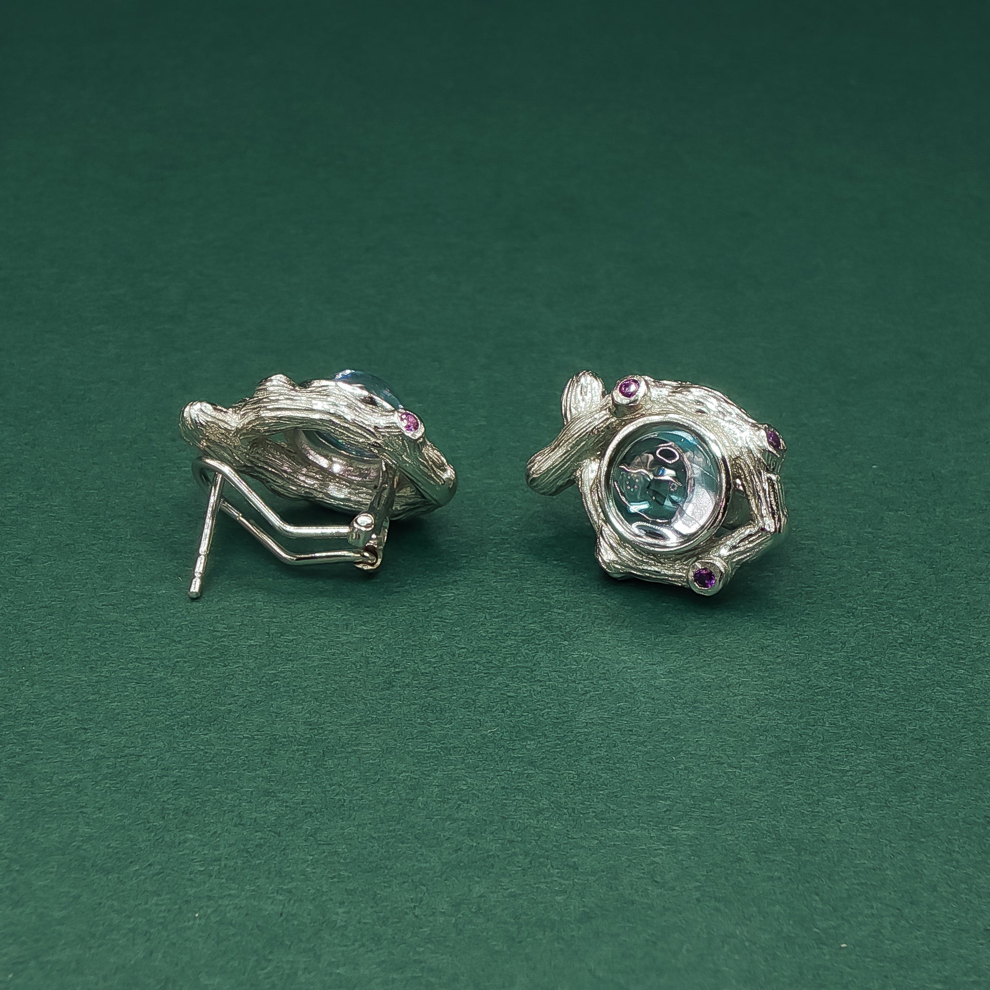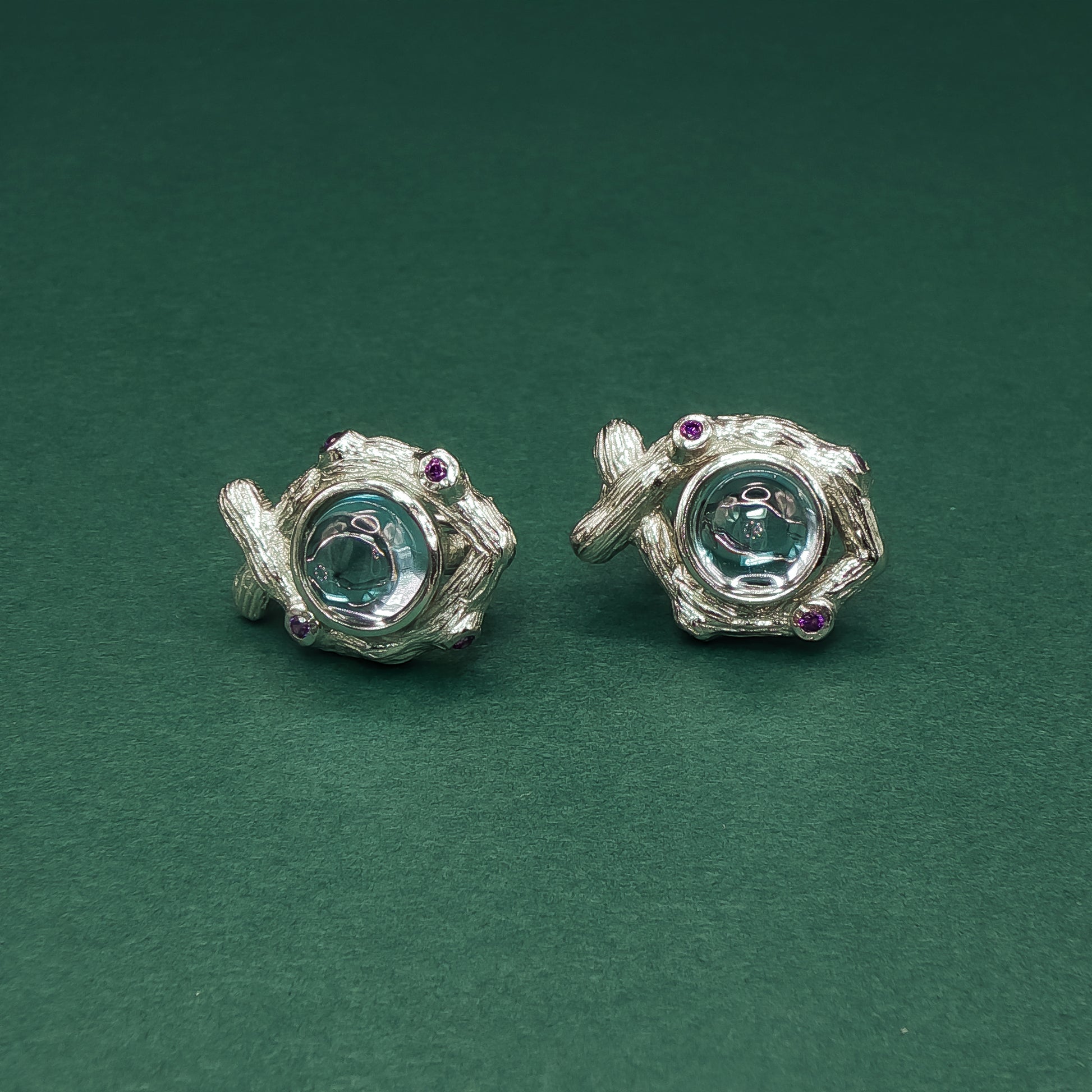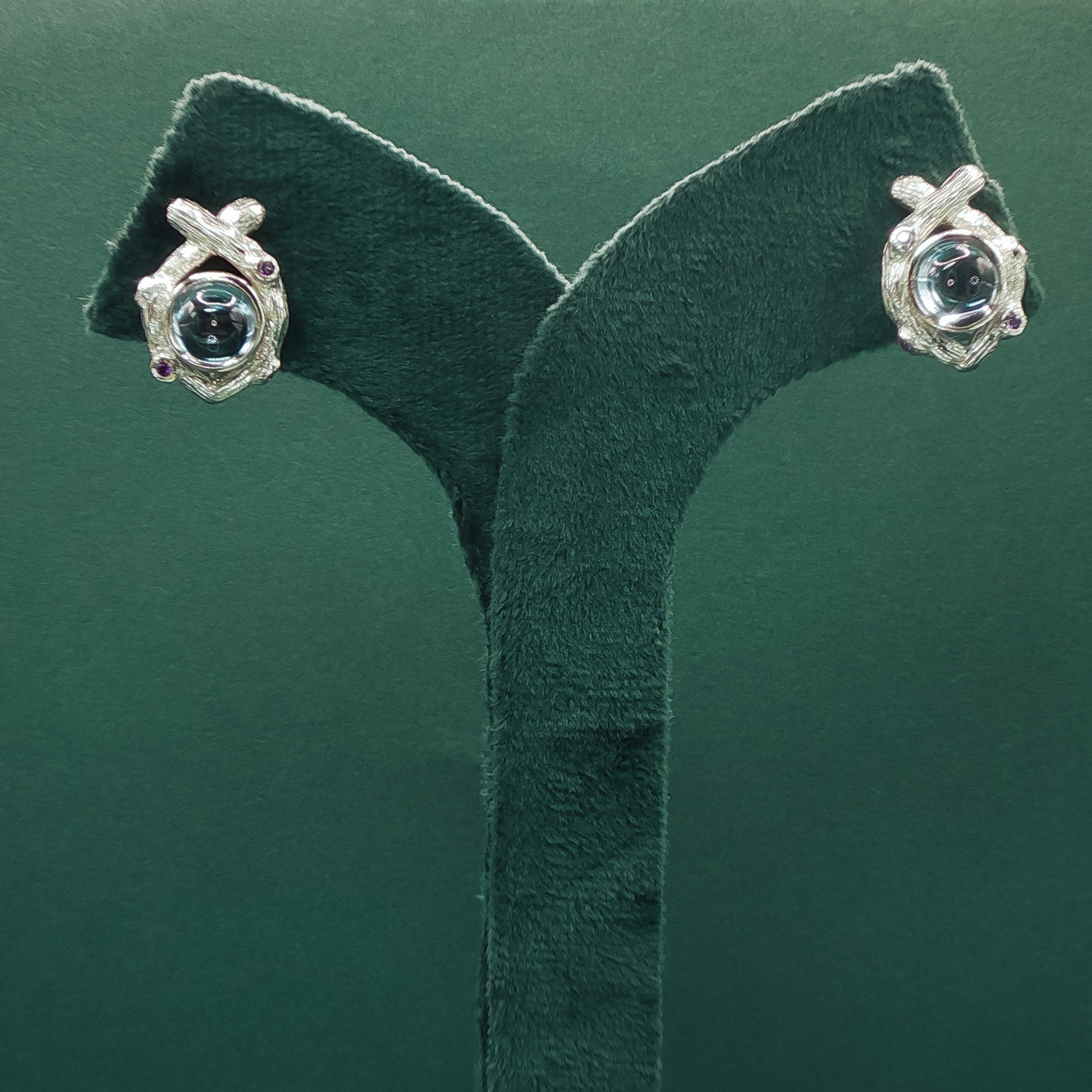 Embrace effortless elegance with these exquisite sterling silver stud earrings. Each earring features a mesmerizing round cabochon aquamarine, evoking the tranquil depths of the sea. These radiant aquamarines possess a captivating blue hue, further enhanced by their alluring transparency. Their simple yet elegant design complements any ensemble, making them the perfect finishing touch for every occasion.